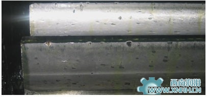 正常磨损的形貌特征:磨光是一种缓慢的磨合,两接触齿面的凹凸不平逐渐被磨去,机加工痕迹逐渐消失,齿面粗糙度大为降低,因此产生光滑的齿面,磨光对改善齿轮的运转状态有积极的促进作用,左下图为磨光图片实例。中等磨损齿面的特征是两齿面都有金属移失,在节曲面附近出现一条连续的条带,如右下图。在寿命以内的正常磨损并不影响齿轮的使用。